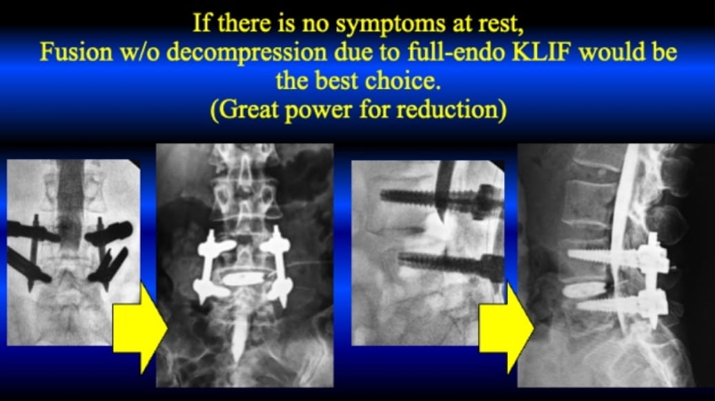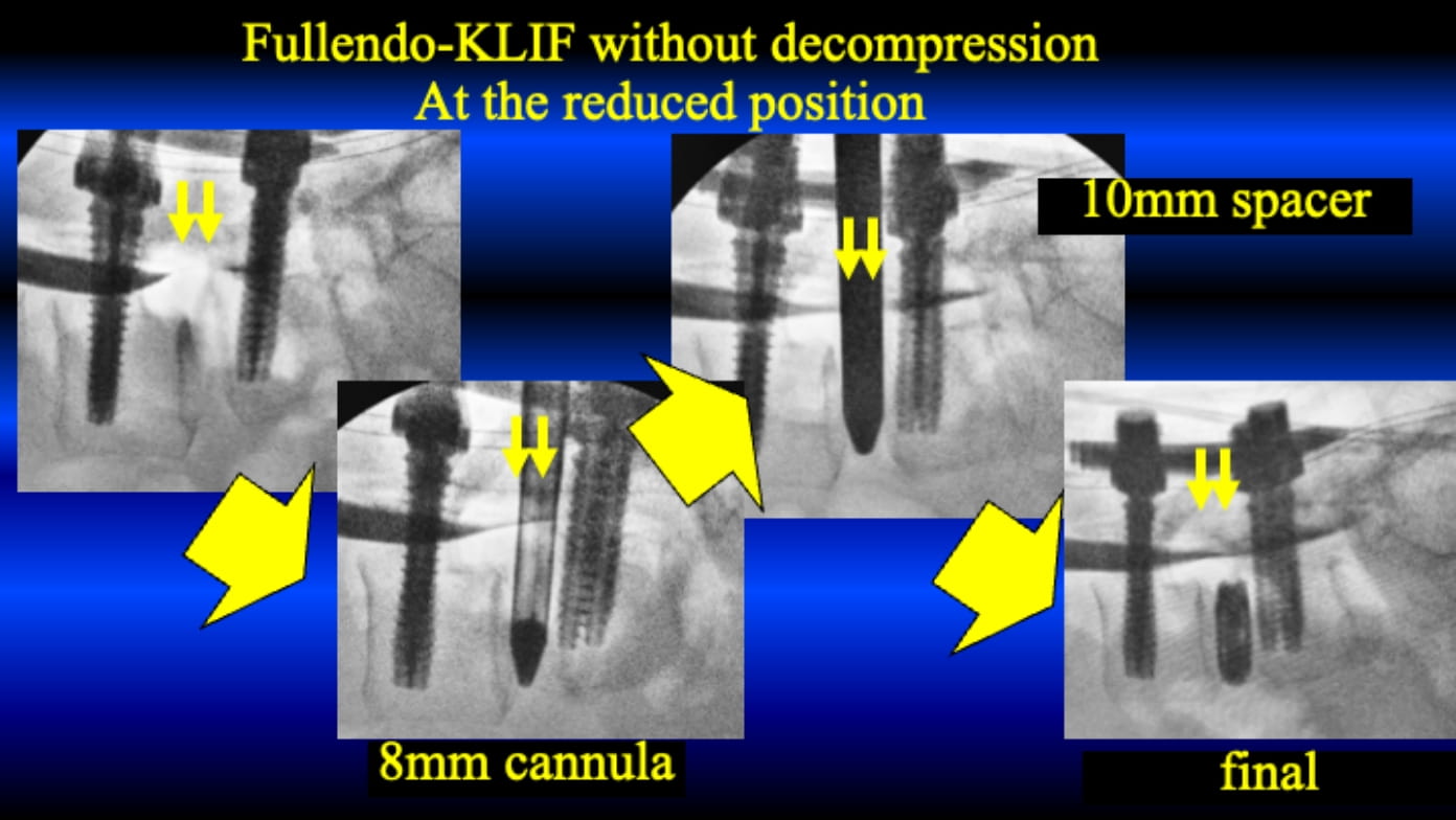 Full-endoscopic Trans-Kambin Lumbar Interbody Fusion (KLIF) for spondylolisthesis